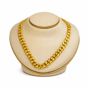 The classic Cuban-style pattern gives the chain a modern yet timeless appeal, making it suitable for both men and women who enjoy statement jewellery. Its polished gold finish reflects light beautifully, adding richness and elegance to any outfit — whether casual, traditional, or party wear.