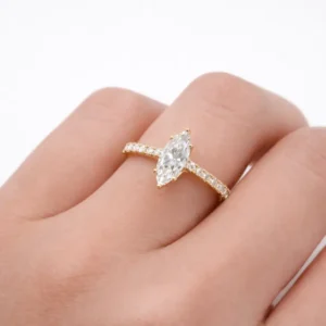 Luxury Oval Cut Diamond Engagement Ring for Women – Yellow Gold Pave Band Proposal Ring
